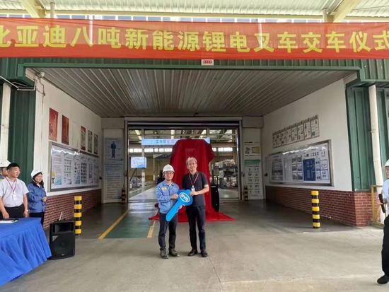 本次交付儀式于江蘇蘇州舉行,比亞迪叉車總經(jīng)理畢國(guó)忠、浦項(xiàng)中國(guó)通河加工中心CEO徐榮基等領(lǐng)導(dǎo)及相關(guān)人員出席了本次儀式。在儀式中,經(jīng)過“千錘百煉”與重重檢測(cè)的比亞迪8噸新能源叉車隆重交付于浦項(xiàng)集團(tuán),以助力其節(jié)省成本、提高物流搬運(yùn)效率,也希望為其更快、更優(yōu)的發(fā)展“添磚加瓦”。